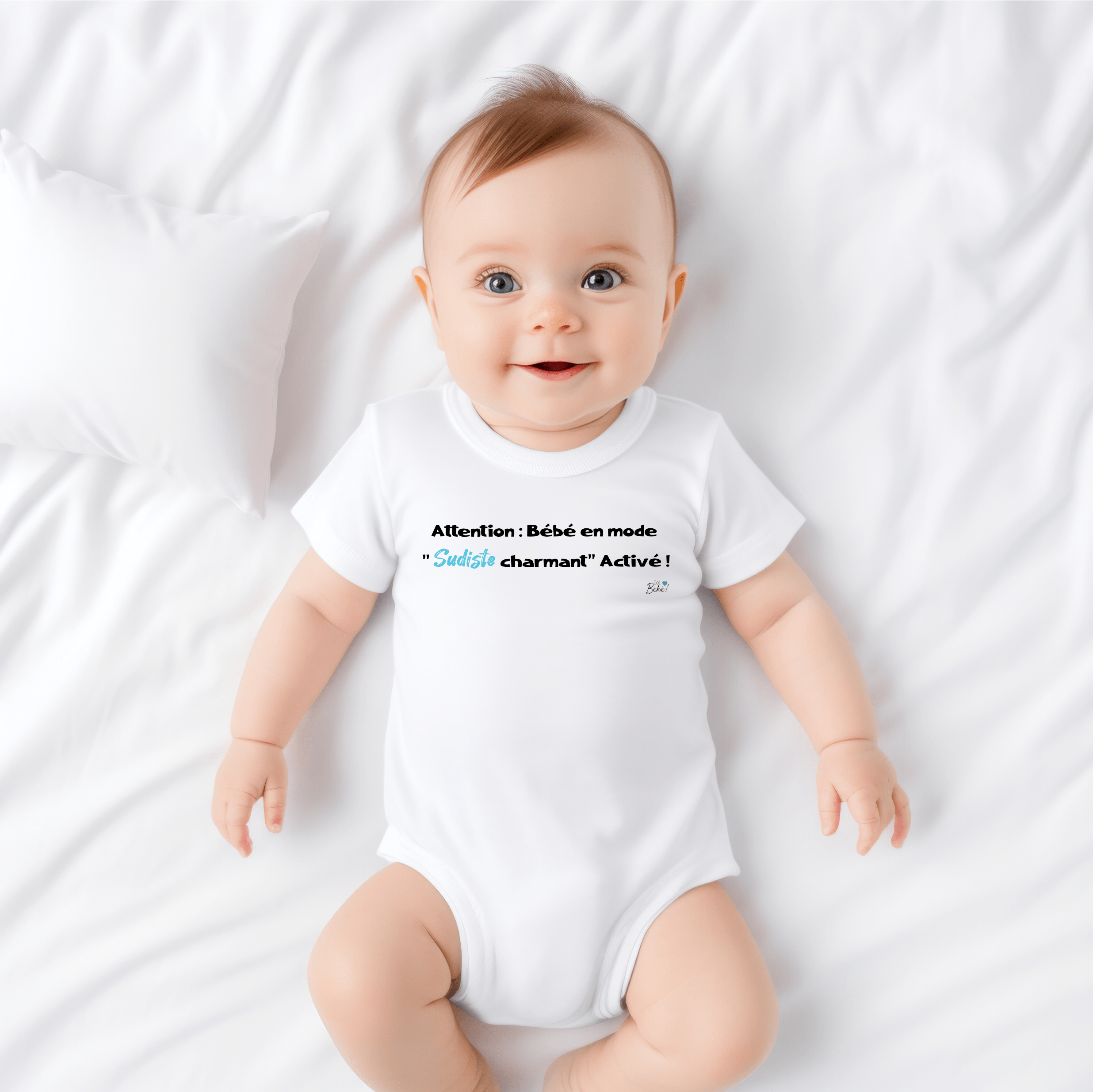 Design Unique : Avec la phrase « Attention bébé du sud en mode charmant activé » imprimée avec soin sur le devant, ce body apporte une touche d’originalité et de bonne humeur à chaque tenue.
