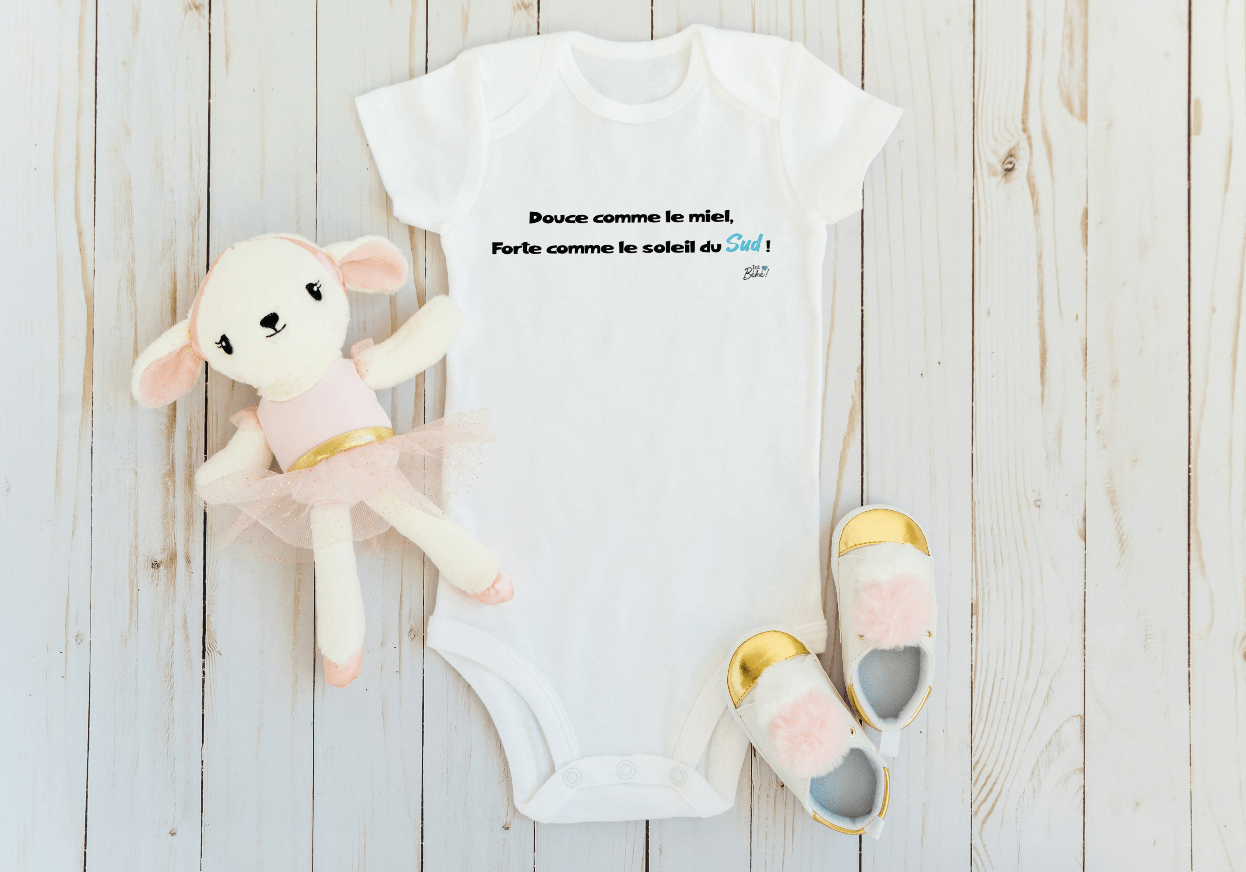 Ajoutez une touche de soleil à la garde-robe de votre bébé avec notre body « Douce comme le miel, forte comme le soleil du sud ». Parfait pour les sorties en famille, les séances photo ou tout simplement pour une journée de détente à la maison.